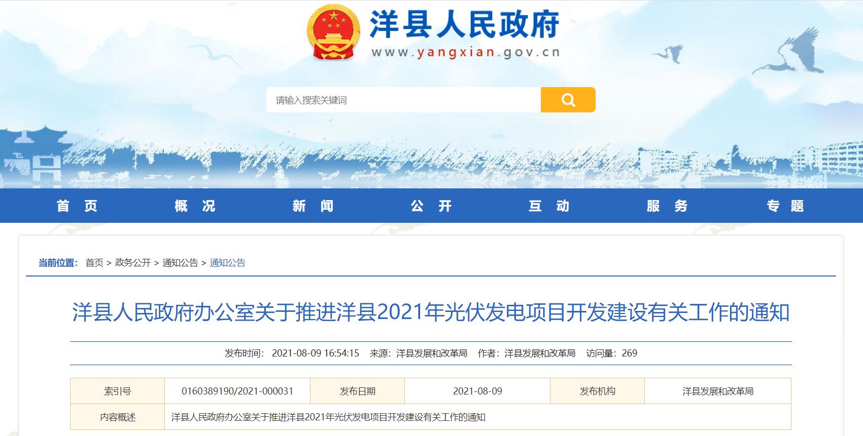 【政策通知】陜西洋縣:2021年擬建集中式地面光伏200MW、分布式光伏180MW