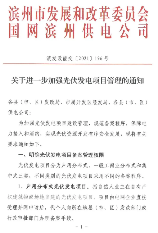 【政策通知】山東濱州:關于進一步加強光伏發電項目管理的通知