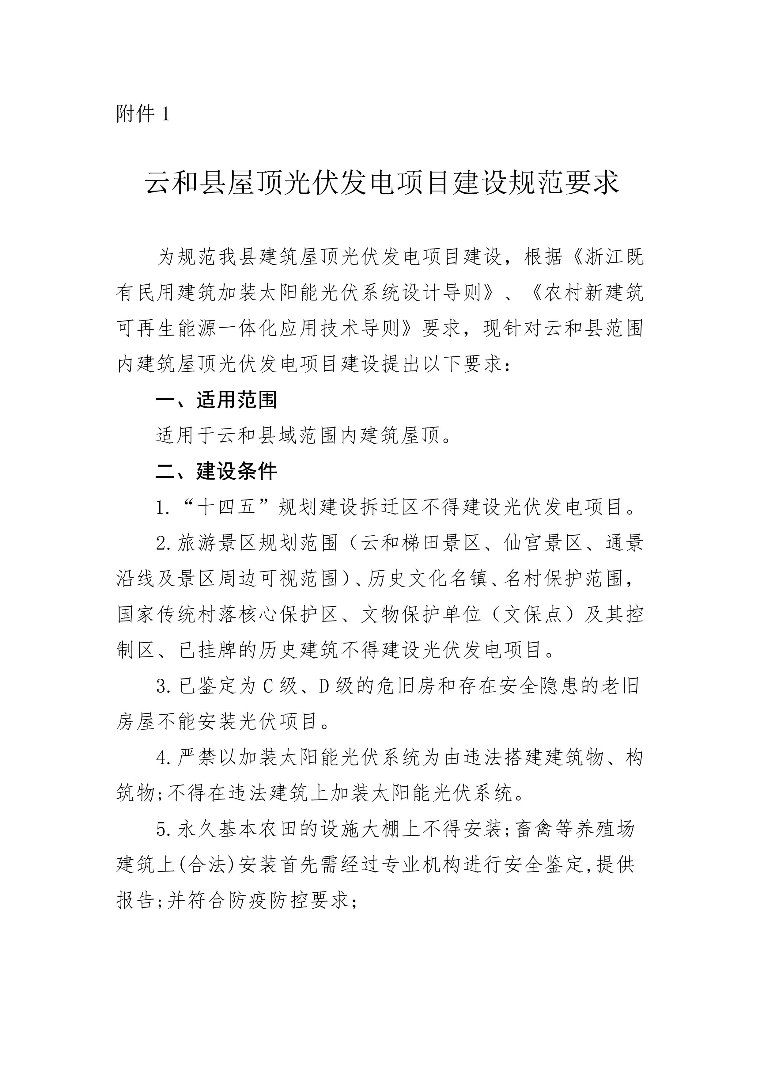 最后,《方案》對云和縣屋頂光伏發電項目建設規范做出要求。
