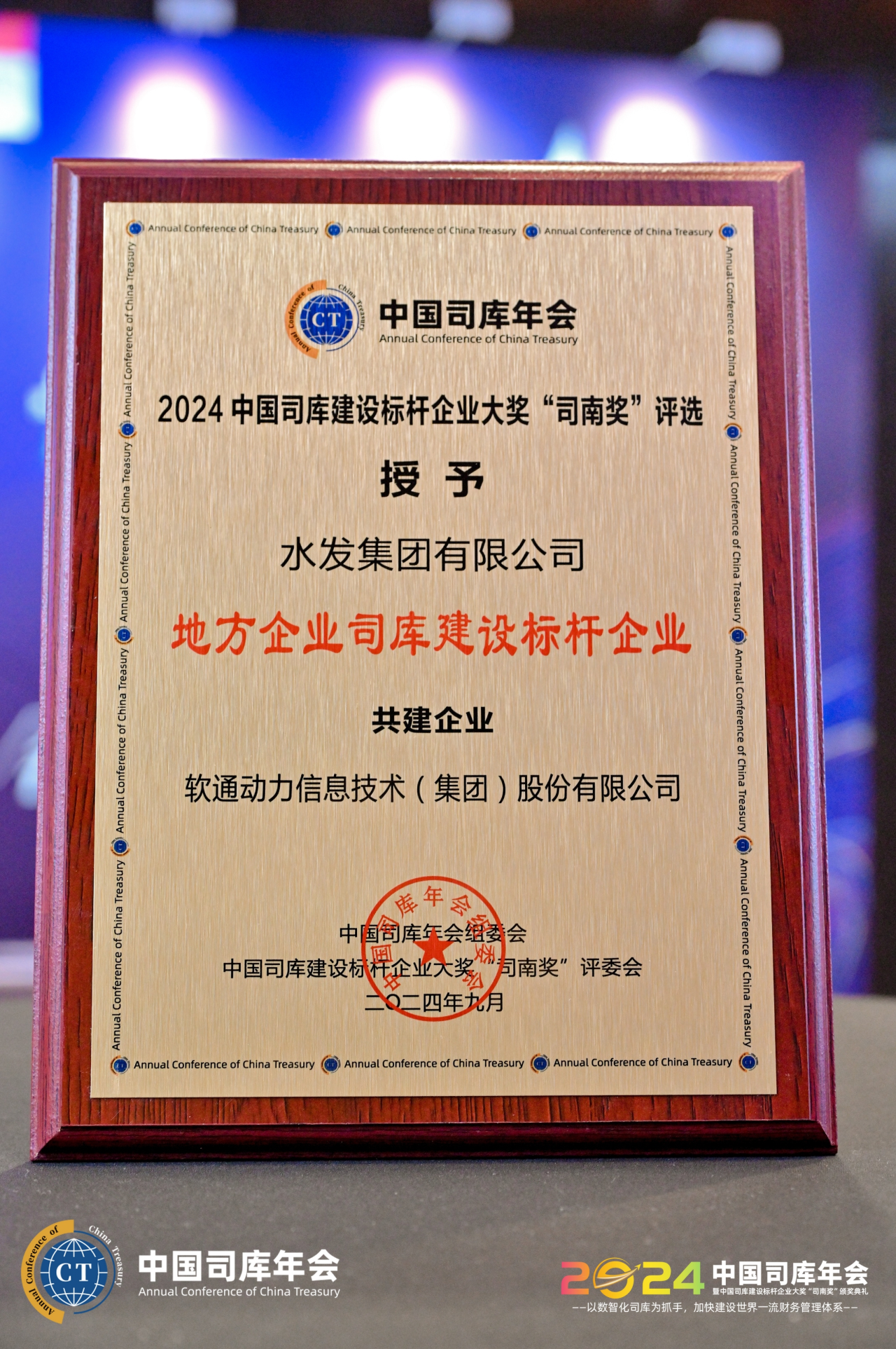 9月6日,2024中國(guó)司庫(kù)年會(huì)暨中國(guó)司庫(kù)建設(shè)標(biāo)桿企業(yè)大獎(jiǎng)“司南獎(jiǎng)”頒獎(jiǎng)典禮在北京召開(kāi),水發(fā)集團(tuán)榮獲“地方企業(yè)司庫(kù)建設(shè)標(biāo)桿企業(yè)”獎(jiǎng)。